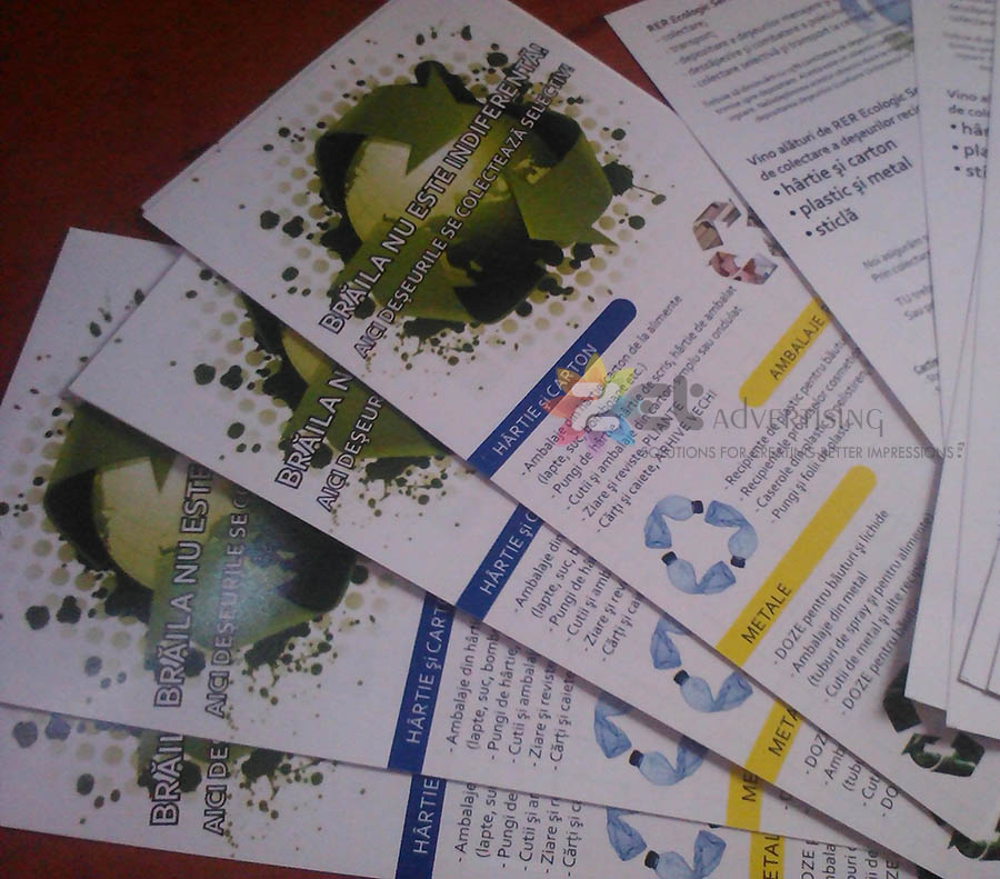 Alimentam imprimantele noastre folosind cerneluri fara solventi sau alti compusi daunatori mediului, fara a afecta calitatea de imprimare. Incercam sa reducem cat mai mult folosirea materialelor de ambalare care au un impact negativ asupra mediului inconjurator.